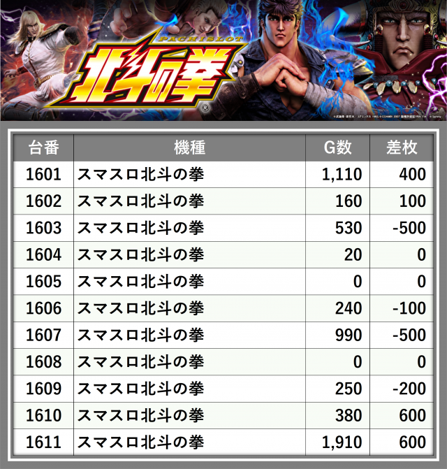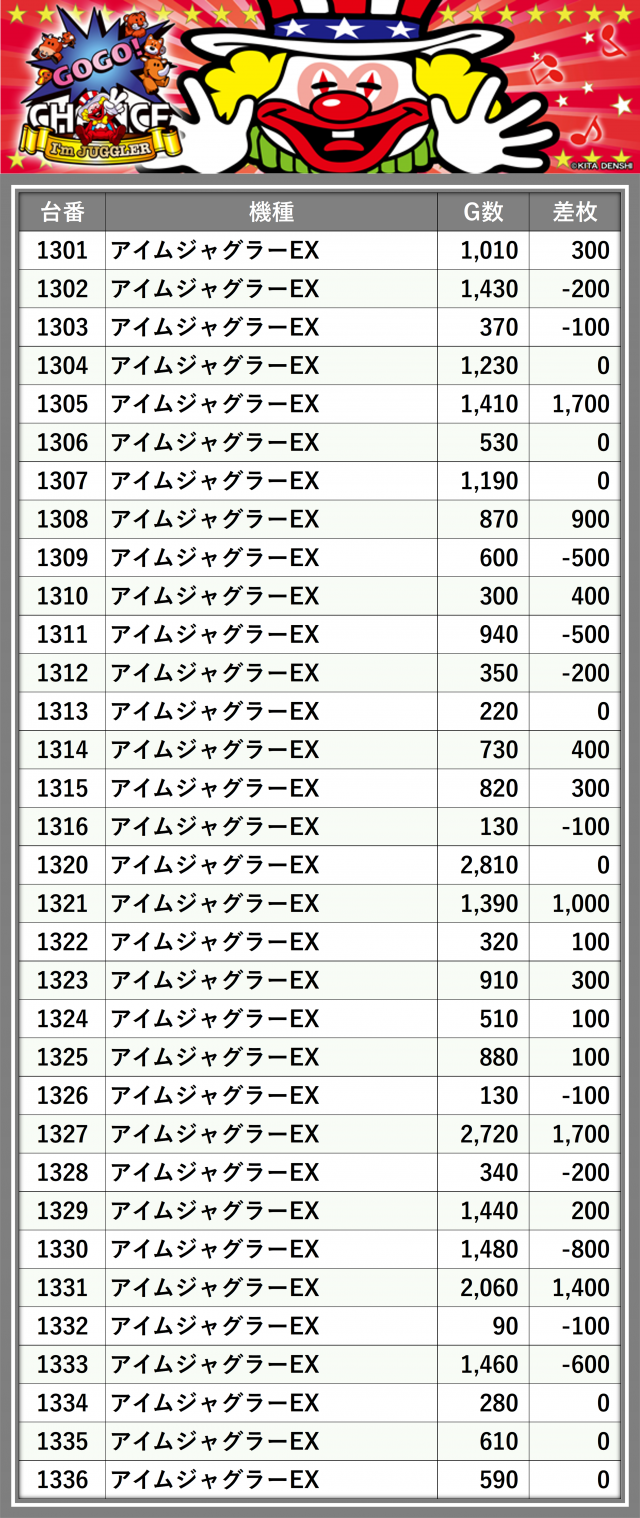※台番順に掲載しています