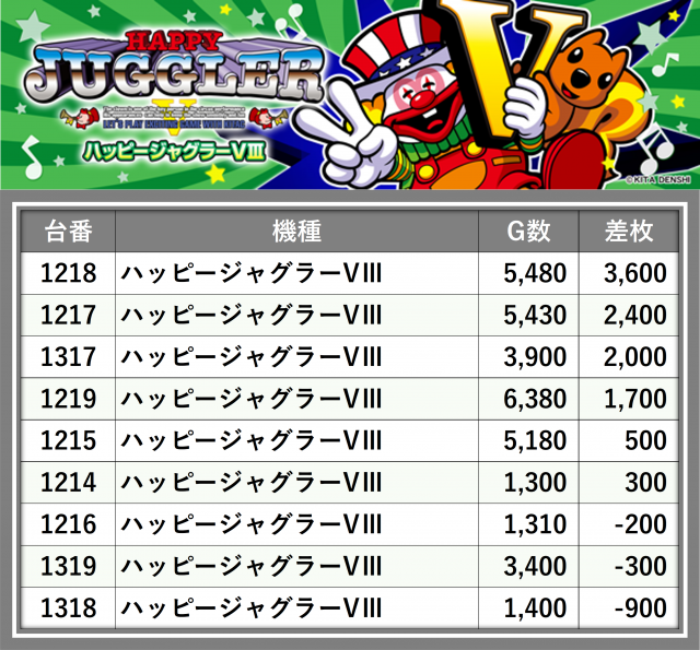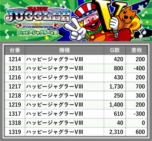 厳選された取材対象機種をはじめ、その他スロット全体から好記録が飛び出した!プレイヤーが楽しんだ1日を下記データにて振り返ってみて欲しい。