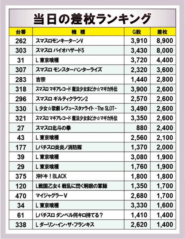 ※記事内の差枚表記はぱちタウン独自調査に基づくものです。ご了承ください。