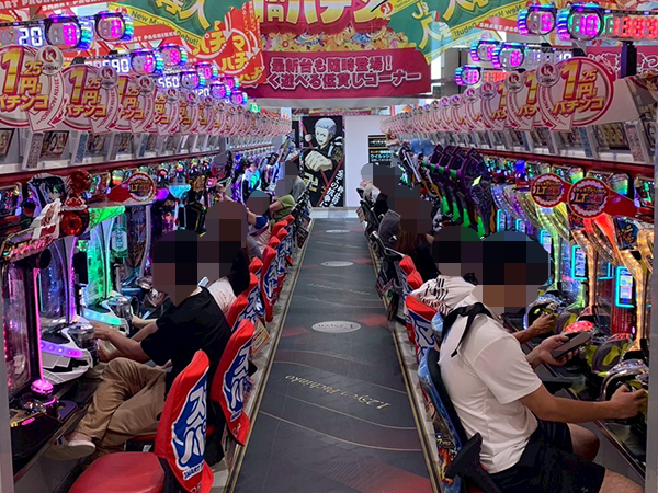 店内には老若男女を問わずプレイヤーが集合。パチンコ・パチスロの各シマから活気が感じられた。