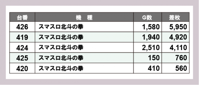 ※差枚数順に掲載しています