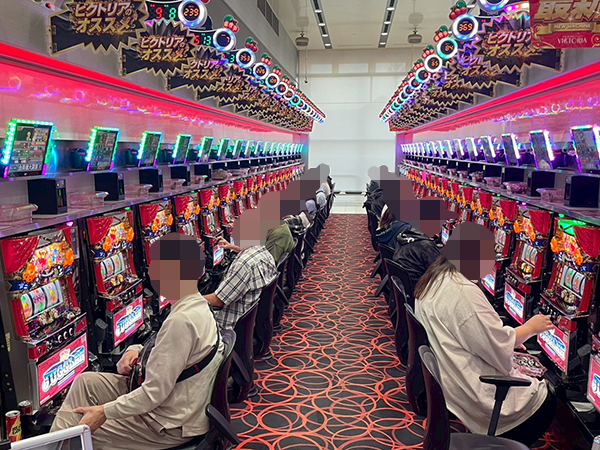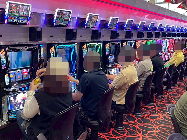 「マイジャグラーⅤ」や「吉宗」、「スマスロ ゴッドイーター リザレクション」では、機種の魅力を堪能するプレイヤーを確認。シマ中に明るい雰囲気が広がっていた。