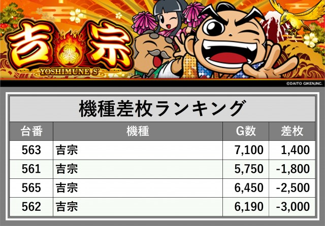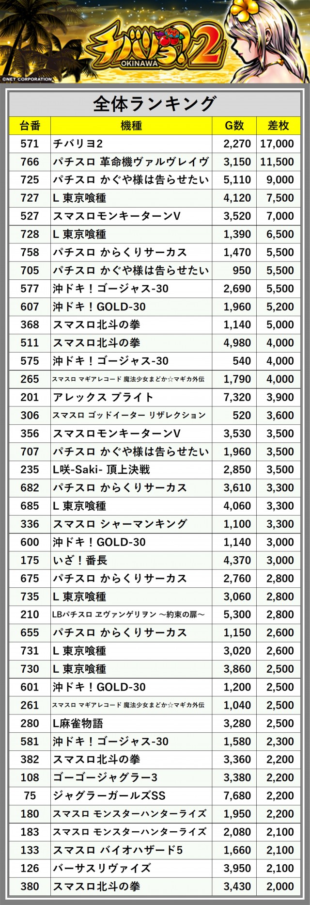 ※差枚数順に掲載しています