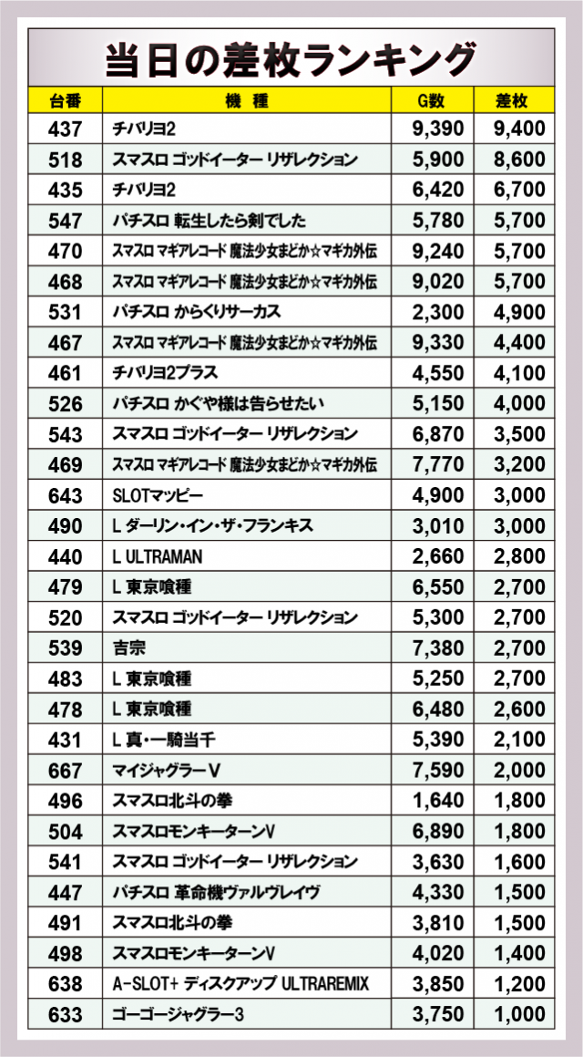 ※記事内の差枚表記はぱちタウン独自調査に基づくものです。ご了承ください。
