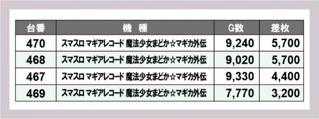 『キコーナ尼崎本店』にて実施された今回の「ONE SPARK取材」は、AT機からノーマル機にまで、多種多様な機種が名を連ねており、誰もが手応えを感じていたのではないだろうか。特に注目すべきは、『チバリヨ2』から9,000枚OVER、『スマスロ ゴッドイーター リザレクション』から8,000枚OVERという素晴らしい記録を叩き出した事だろう。そして、機種別ランキングで一際存在感を放っていた『スマスロ マギアレコード 魔法少女まどか☆マギカ外伝 』。まとまった出玉を確保し、回転数を見ても打ちごたえのある状況が続いていた!熱気と興奮に包まれた空間で、多くのユーザーが手応えを感じていた事だろう。次回も同等以上の内容に期待できるため、引き続き動向や情報から目を離してはいけないぞ!