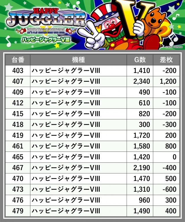 厳選された取材対象機種をはじめ、その他スロット全体から好記録が飛び出した!プレイヤーが楽しんだ1日を下記データにて振り返ってみて欲しい。