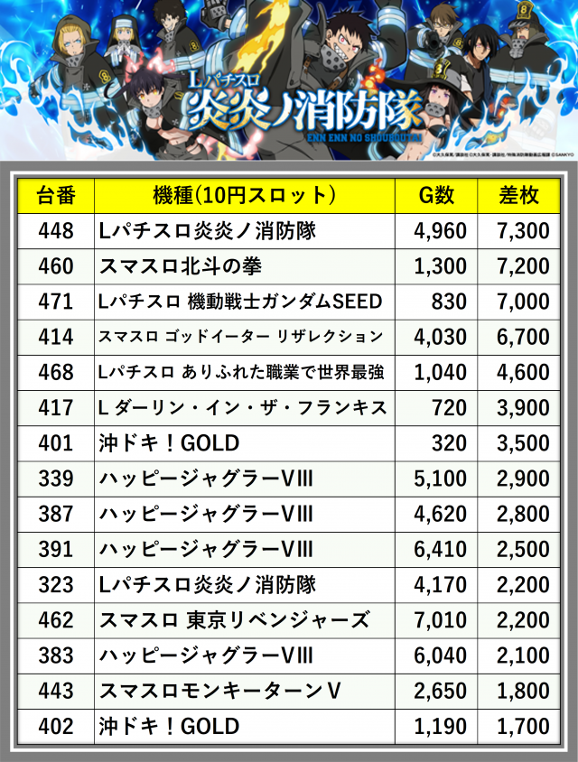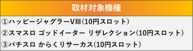 厳選された取材対象機種をはじめ、その他スロット全体から好記録が飛び出した!プレイヤーが楽しんだ1日を下記データにて振り返ってみて欲しい。