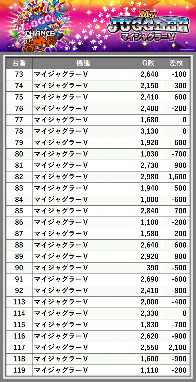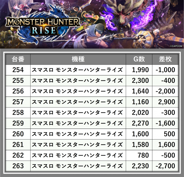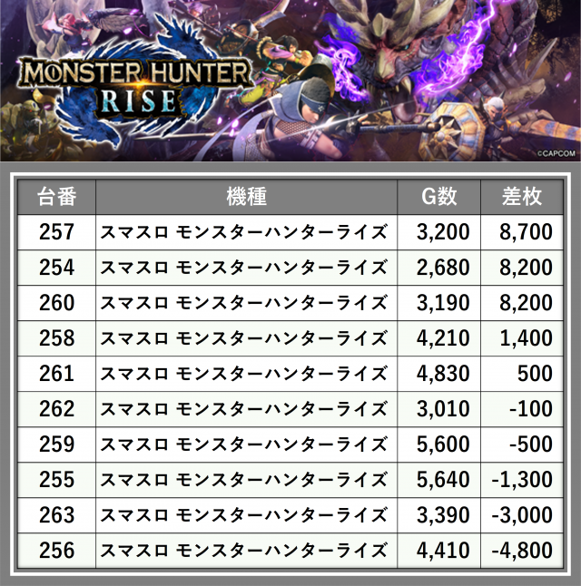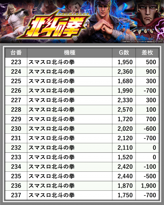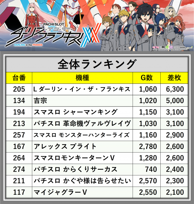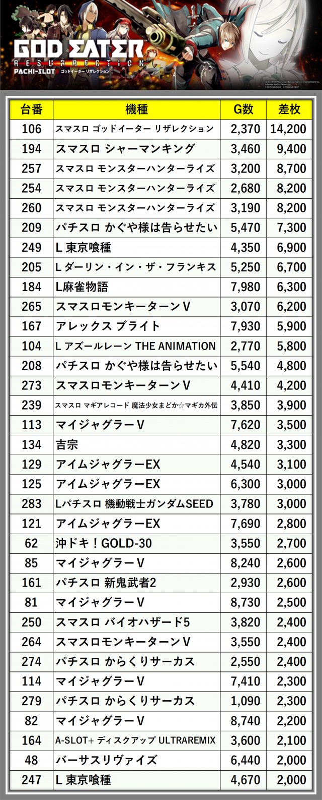 ※差枚数順に掲載しています