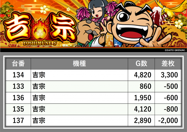 厳選された取材対象機種をはじめ、その他スロット全体から好記録が飛び出した!プレイヤーが楽しんだ1日を下記データにて振り返ってみて欲しい。