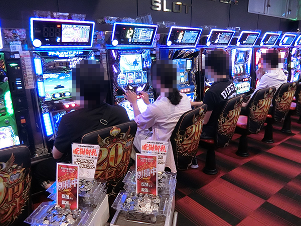 20円パチスロでは、「パチスロ ガールズ&パンツァー」や「SLOTギルティクラウン」、「SLOT魔法少女まどか☆マギカ」などで見事なパフォーマンスを披露するプレイヤーを目撃。それぞれ心から遊技を堪能しているようだった。
