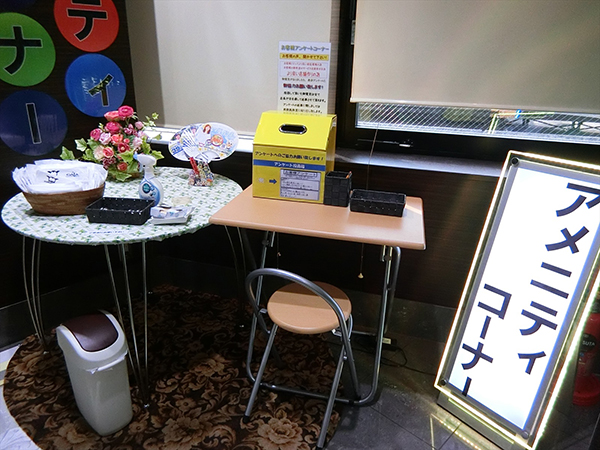 そしてアメニティコーナーには、消臭スプレーや綿棒、うちわなどが用意されている。アンケートBOXを設置することでプレイヤーからの声を募集し、より良い店舗づくりに励む取り組もうという姿勢も見受けられた。