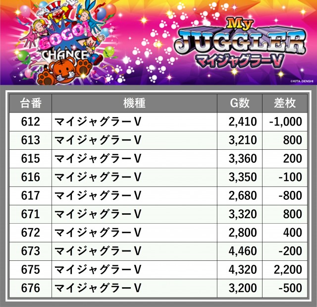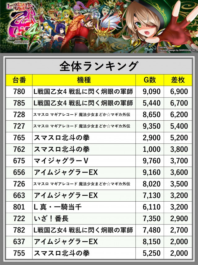 厳選された取材対象機種をはじめ、その他スロット全体から好記録が飛び出した!プレイヤーが楽しんだ1日を下記データにて振り返ってみて欲しい。