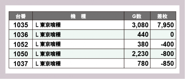 ※差枚数順に掲載しています