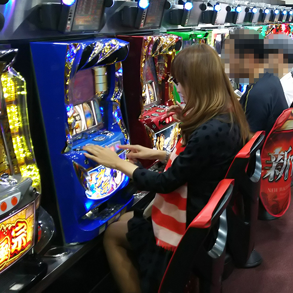 取材当日は、同店のイメージガール宇都慶子さんが来店。「政宗2」やGODシリーズなどで実戦をおこなっていた。