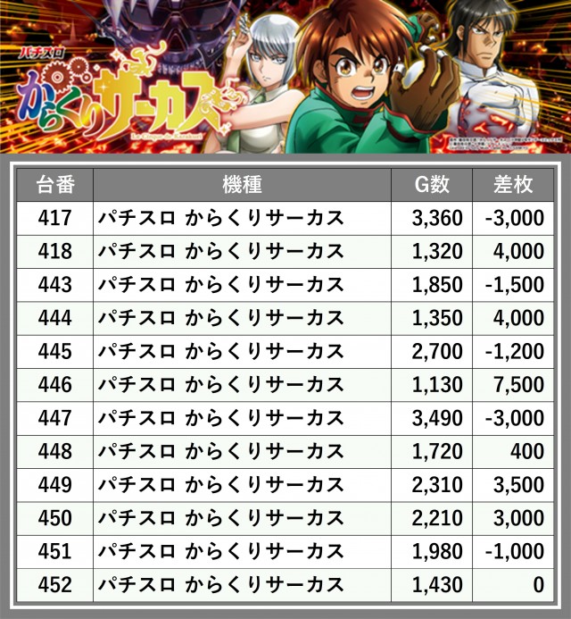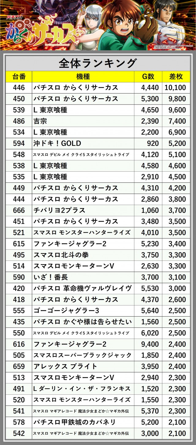 ※差枚数順に掲載しています