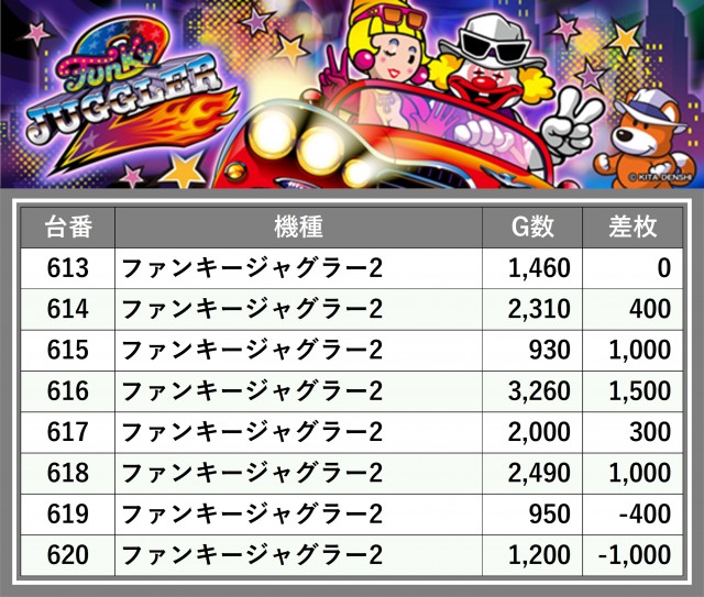 厳選された取材対象機種をはじめ、その他スロット全体から好記録が飛び出した!プレイヤーが楽しんだ1日を下記データにて振り返ってみて欲しい。
