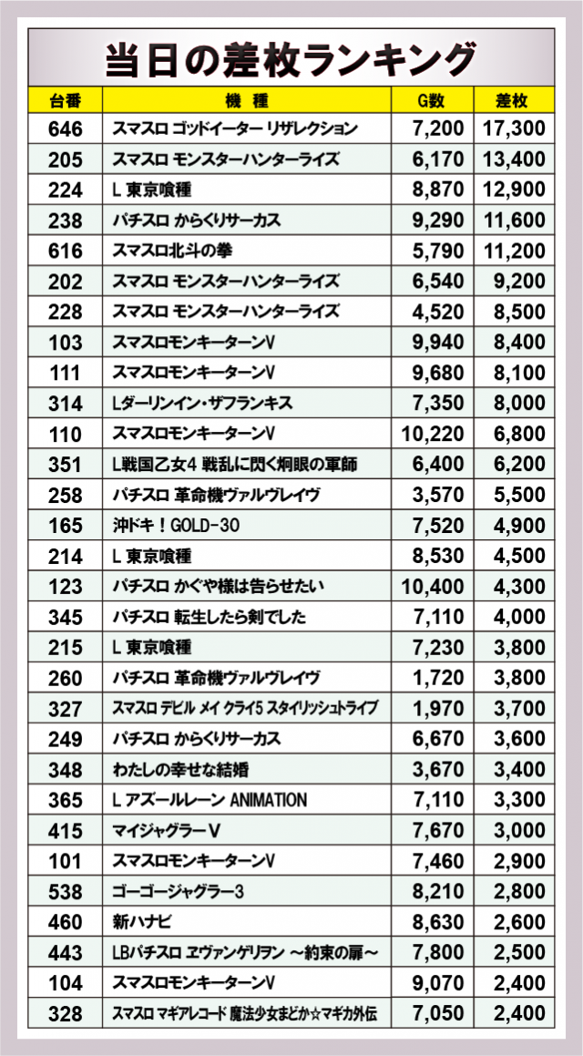 ※記事内の差枚表記はぱちタウン独自調査に基づくものです。ご了承ください。