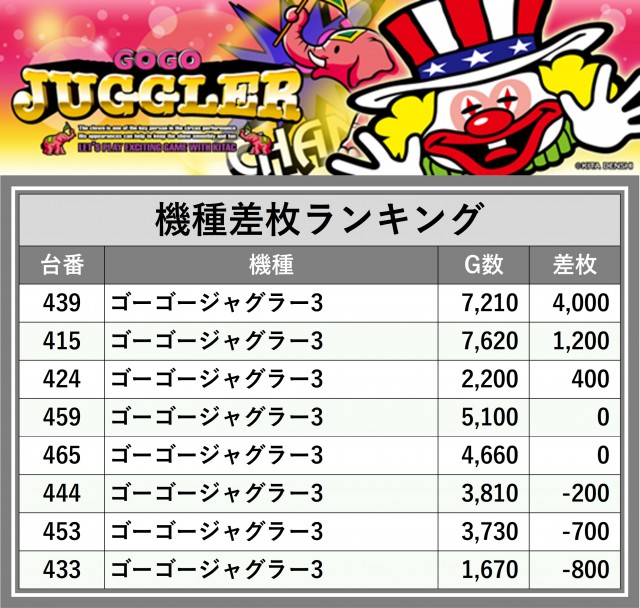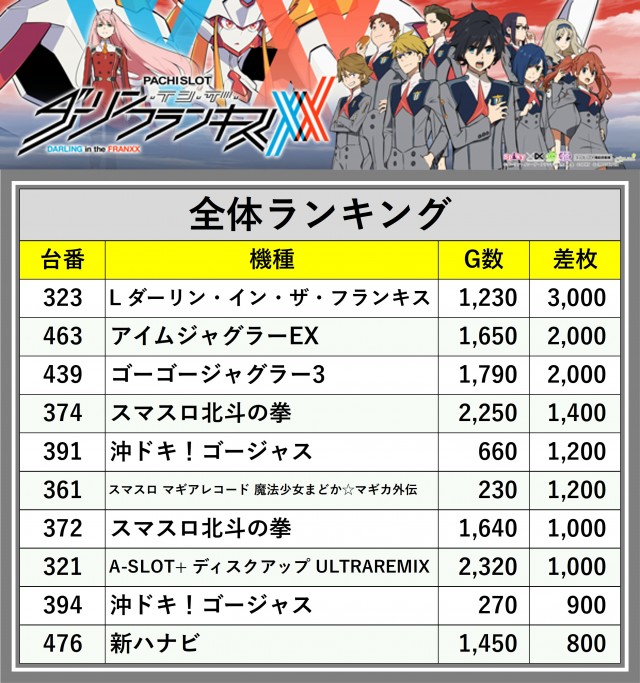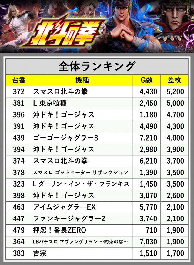 ※差枚数順に掲載しています