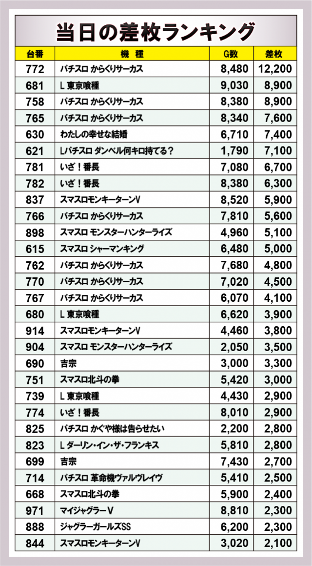 ※記事内の差枚表記はぱちタウン独自調査に基づくものです。ご了承ください。