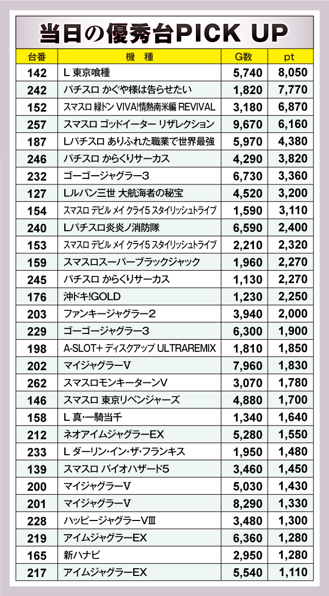 ※差枚pt順に掲載しています。