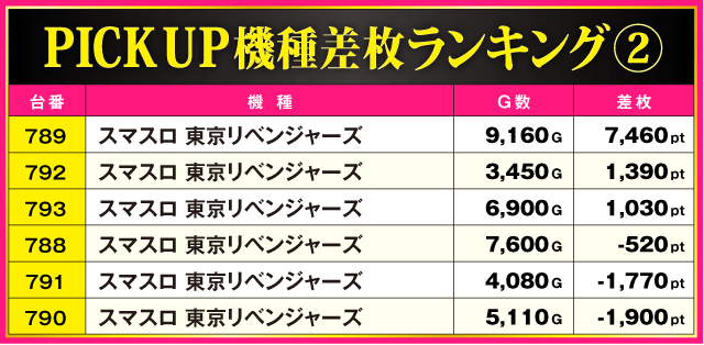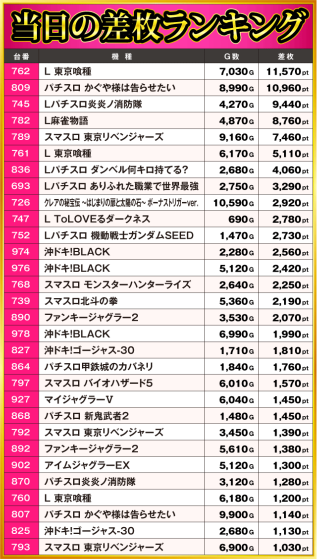当日の差枚ランキング