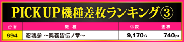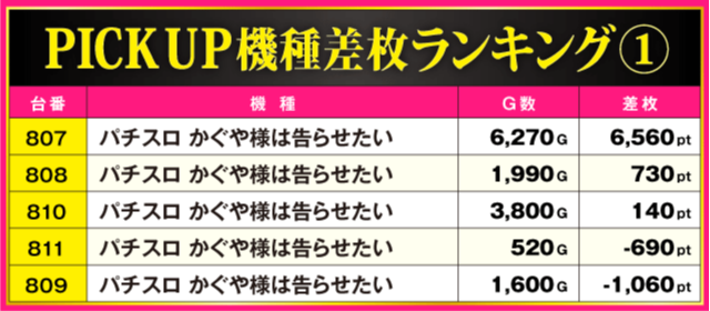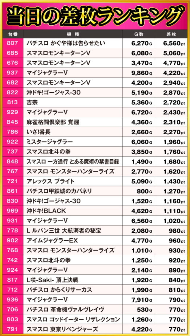 当日の差枚ランキング