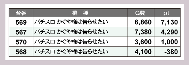 定番人気の『スマスロ ゴッドイーター リザレクション』と『パチスロ かぐや様は告らせたい』からは4桁プラスpt台が複数飛びだし、『スマスロ ゴッドイーター リザレクション』からは1万ptオーバーが誕生している。