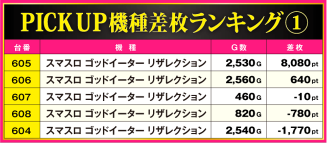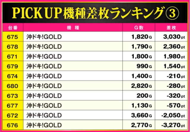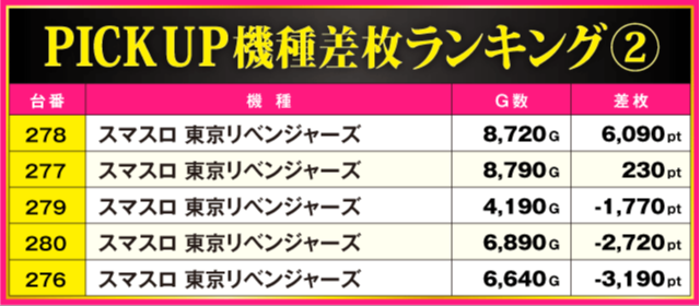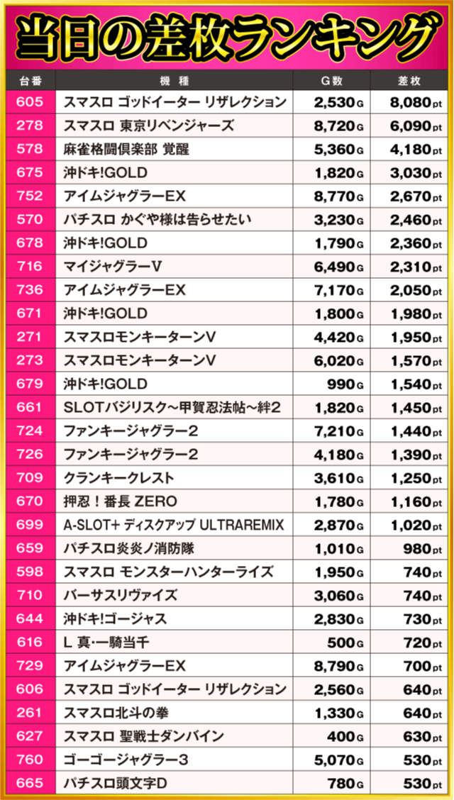 当日の差枚ランキング