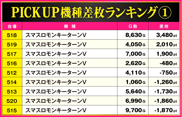 当日の差枚ランキング