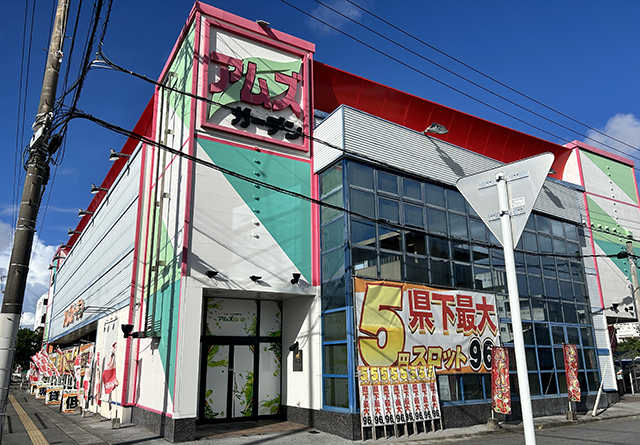 9月13日、沖縄県糸満市にある「アムズらいと糸満店」へと向かった。今回の取材は、「スマート取材」だ。県下最大規模を誇る5円パチスロコーナーにて、プレイヤーたちがスマートに遊技を楽しんでいた。
