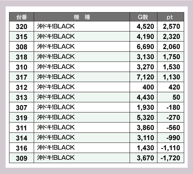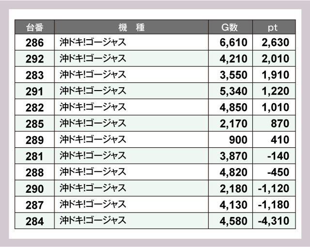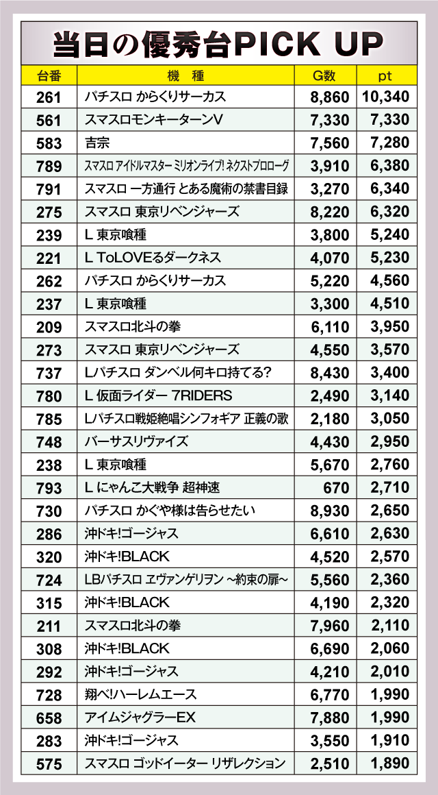 ※差枚pt順に掲載しています。