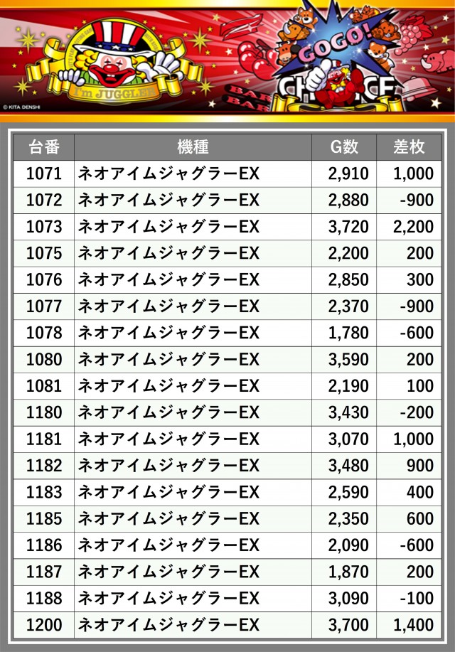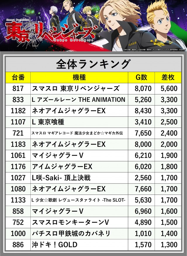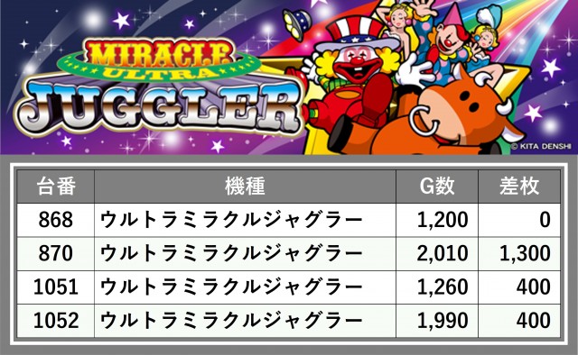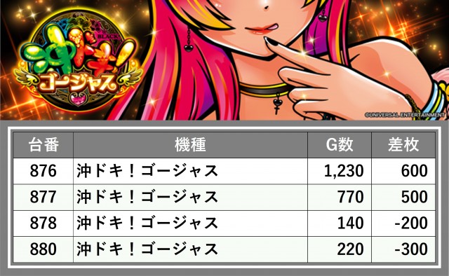 厳選された取材対象機種をはじめ、その他スロット全体から好記録が飛び出した!プレイヤーが楽しんだ1日を下記データにて振り返ってみて欲しい。
