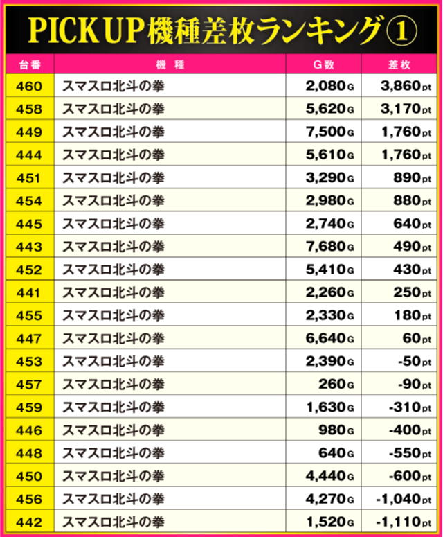 ※差枚pt順に掲載しています。