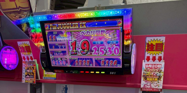 この日は、主力のジャグラーシリーズをはじめ、多台数設置機種から少台数設機種に至るまで、様々な機種から好成績が発生。そんな中、『スマスロモンキーターンV』と『スマスロ バイオハザード5』が+7,000pt超、『L 東京喰種』が+5,960ptを記録し店内を盛り上げていた。