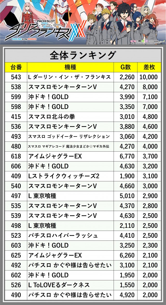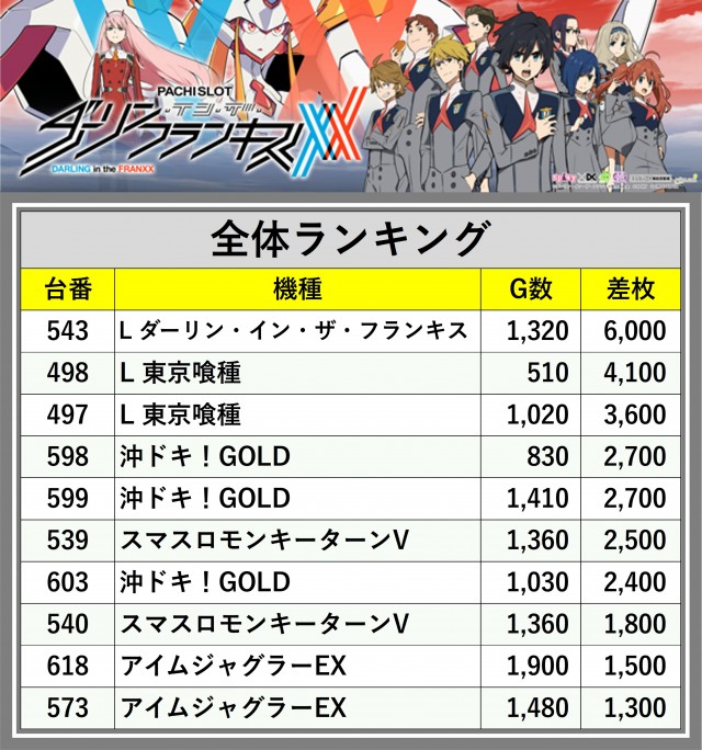 厳選された取材対象機種をはじめ、その他スロット全体から好記録が飛び出した!プレイヤーが楽しんだ1日を下記データにて振り返ってみて欲しい。