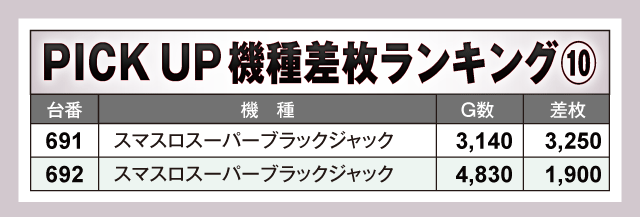 続いてPICK UP機種の状況をチェック!! ランキング上位台以外からも多数の好調台が確認されており、『スマスロ バイオハザード5』からは+7,120枚、『沖ドキ!ゴージャス-30』と『吉宗』からは+5,000枚超といったハイスコアが発生。また、2つのジャグラーシリーズは両機種とも半数以上の台がプラス差枚で実戦を終える見事な結果を残しファンを喜ばせていた。