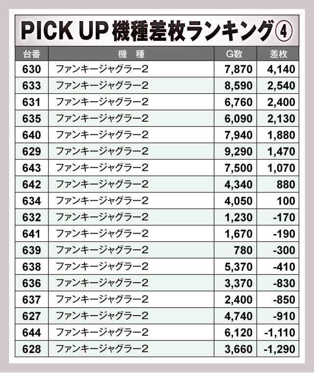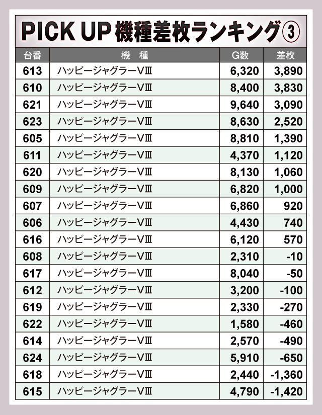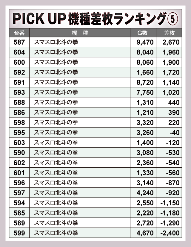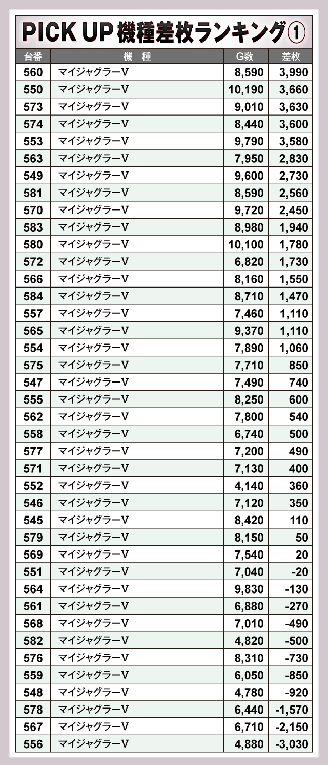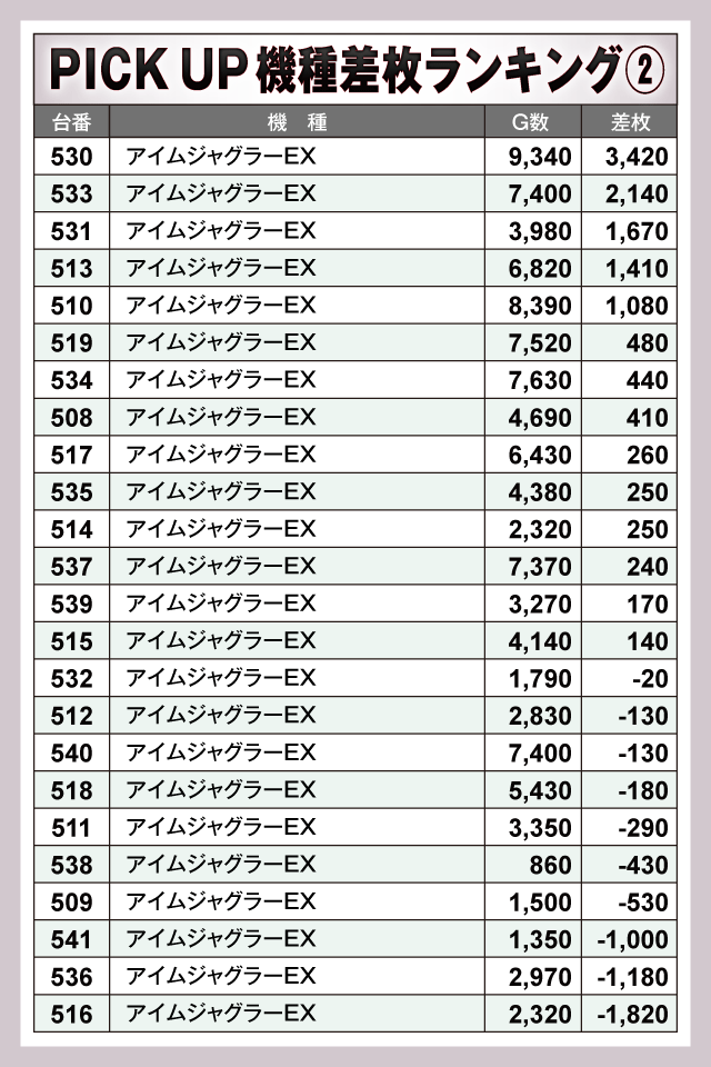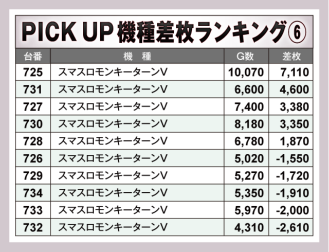 ※差枚数順に掲載しています。