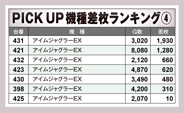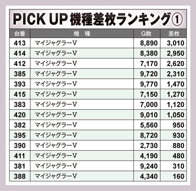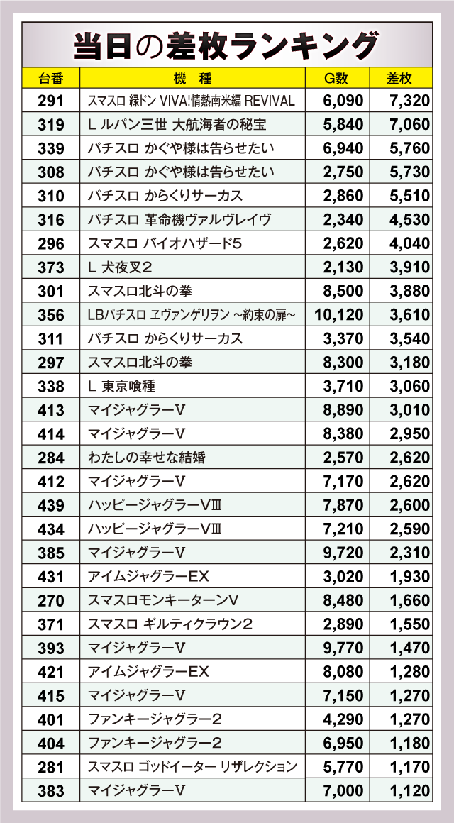 ※差枚数順に掲載しています。