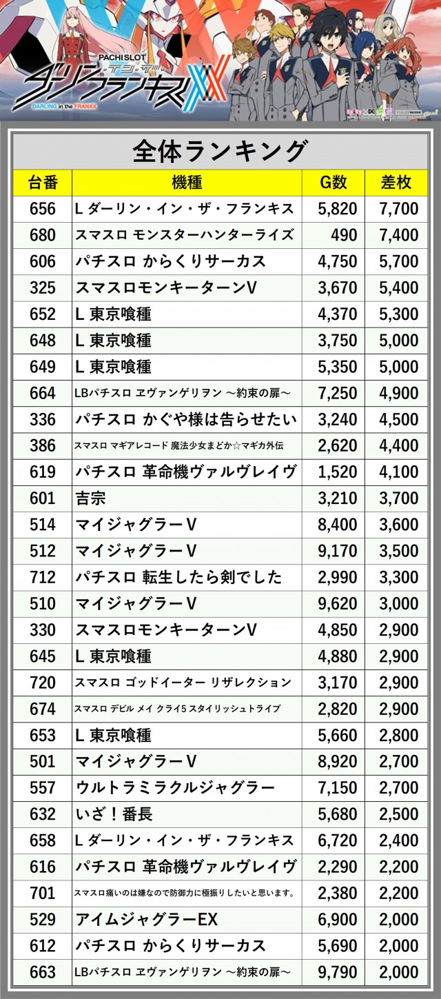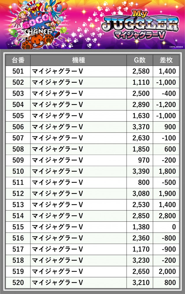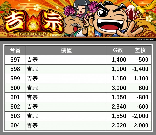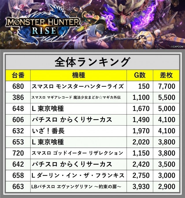 厳選された取材対象機種をはじめ、その他スロット全体から好記録が飛び出した!プレイヤーが楽しんだ1日を下記データにて振り返ってみて欲しい。