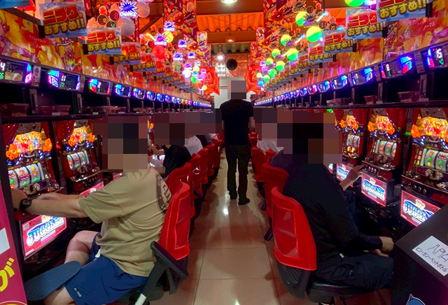 取材時はほぼ満席となっており、笑顔で遊技をおこなっているプレイヤーも多い。