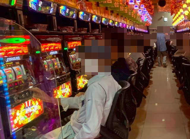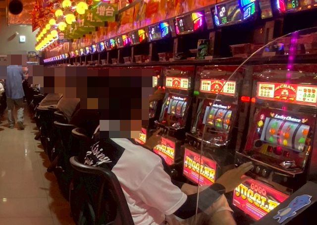午後のパチスロでは、「マイジャグラーⅤ」に活気のある景色が広がっていた。