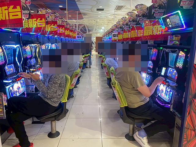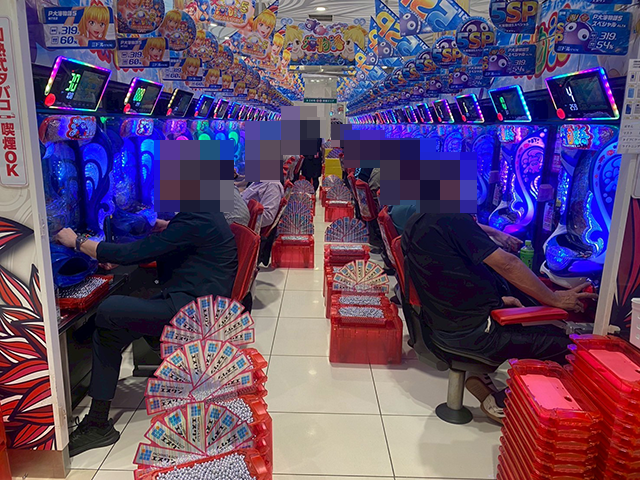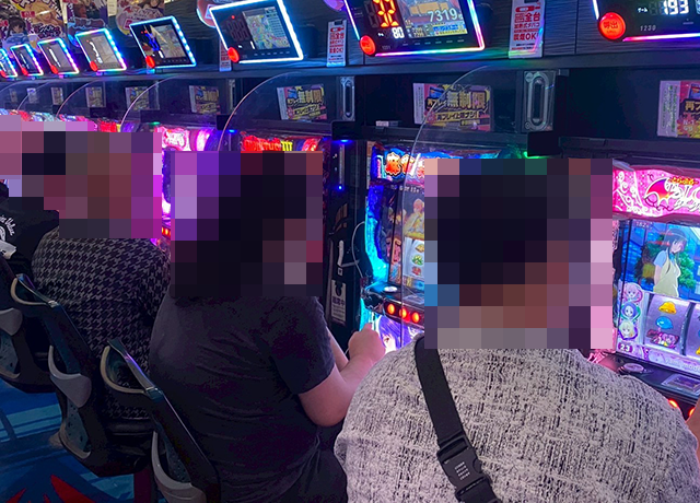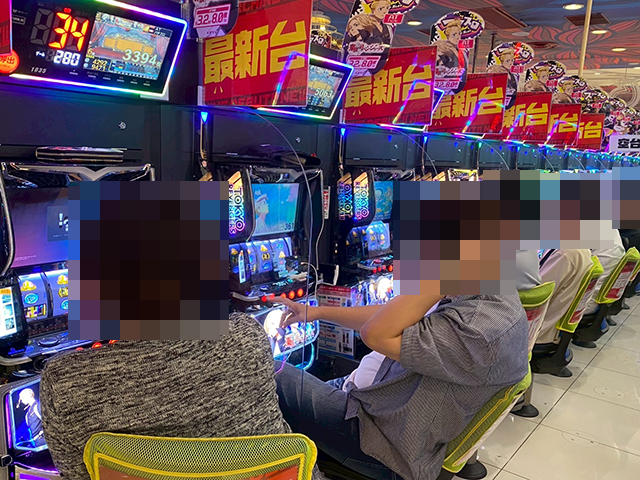持ち玉を使い、うれしそうに遊技をおこなっていた。
