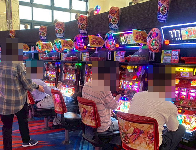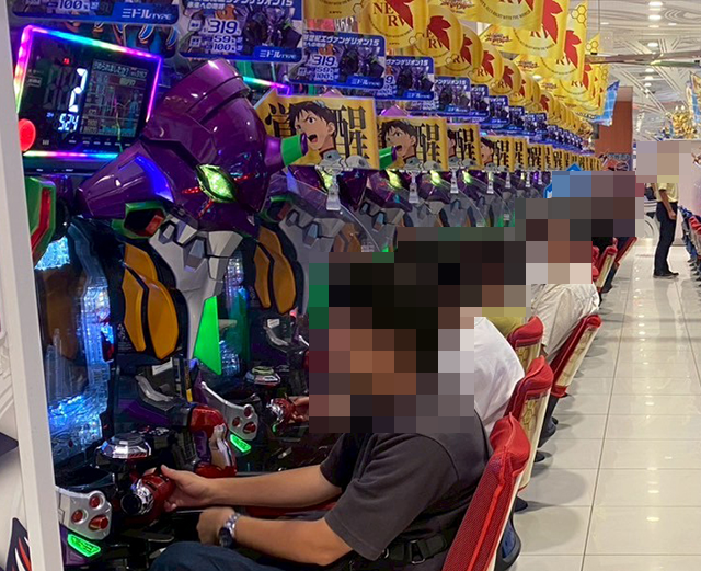 パチンコをみると、「新世紀エヴァンゲリオン〜未来への咆哮〜」を支持しているプレイヤーが多く、にぎやかな光景が広がっていた。
