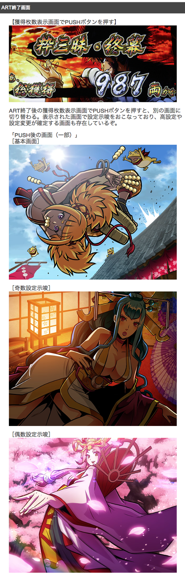対決のタイトル画面やART終了後の獲得枚数表示画面でPUSHボタンを押そう。変化するサイコロの出目や登場するキャラに設定示唆の要素が存在する。