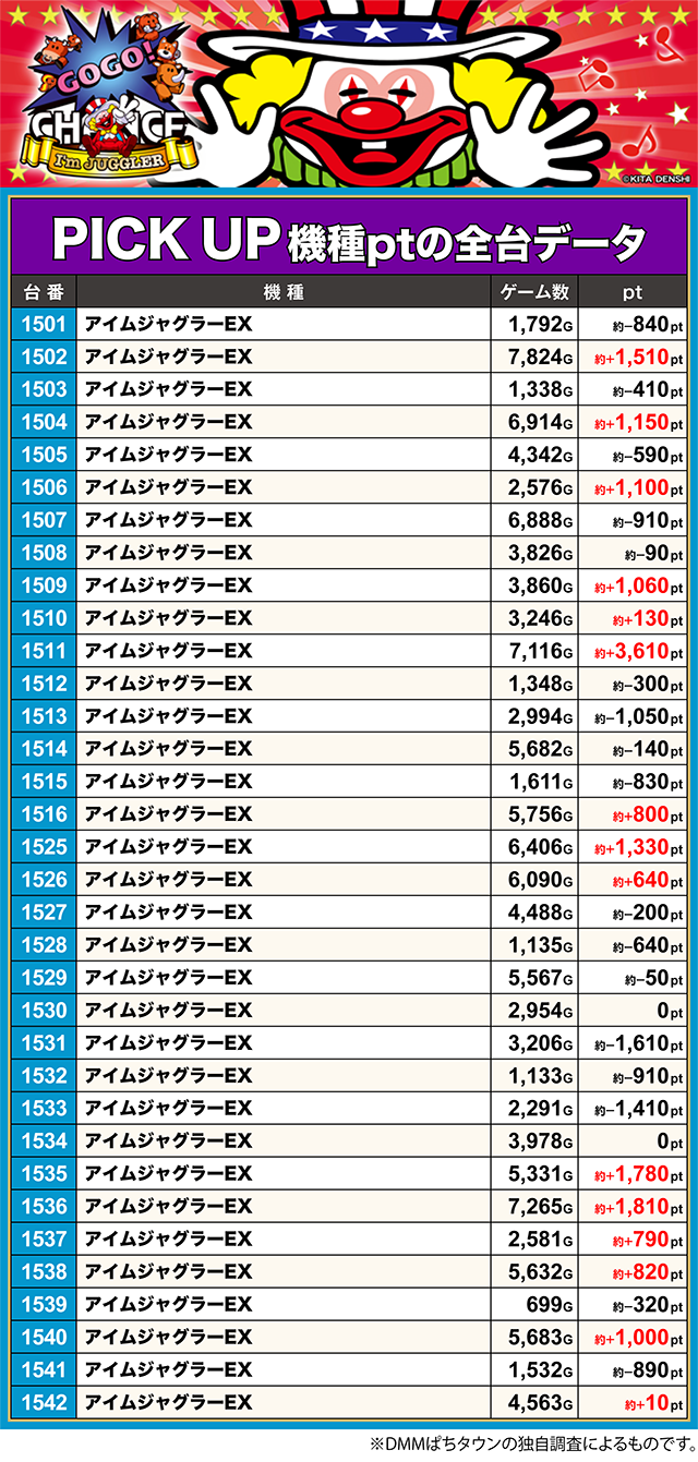 2店舗・ジャグラーPICK UP機種全台データ