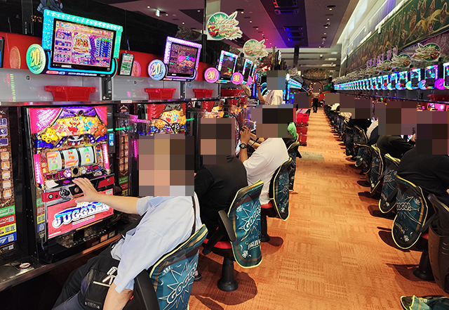 スマスロもメダル機もみどころが多く、活気に満ちていた「フジコー三島店」。
