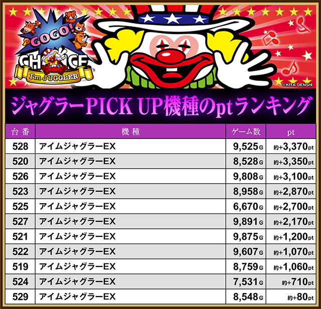 「ゴーゴージャグラー3」の355番台や「L 東京喰種」の380番台なども約+4,000pt以上となった。