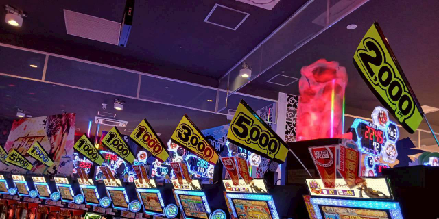 楽園袋井店のPICK UP機種である『押忍!番長ZERO』は、1704番台が+5,000pt超を記録。さらに、全4台中3台がプラス差枚という見事な結果を残しており、シマ内は常に活気に満ち溢れていた。