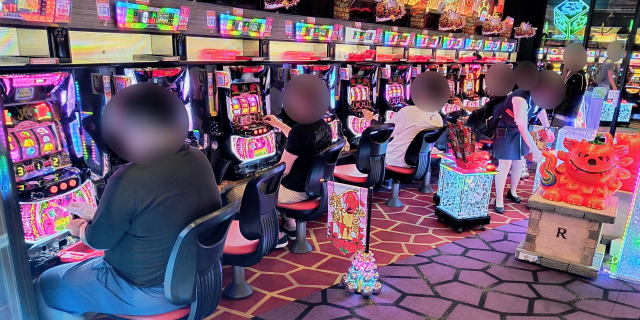 この日、朝から240人のプレイヤーが集まった「楽園沼津店」。店内状況をチェックすると、『スロット ソードアート・オンライン』で+8,000pt超、『スマスロ北斗の拳』で+7,000pt超など、万枚超を叩き出したPICK UP機種の『スマスロスーパーブラックジャック』以外にも多数の好成績が確認されている。