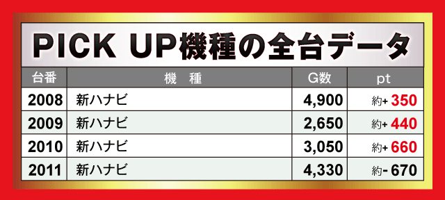 今回の全店共通PICK UP機種は根強い人気を誇る『新ハナビ』で、各店から多数の好調台が確認されている。最終的に全店舗のトータル21台のうち15台がプラス差枚で実戦を終えているだけに、ファンにとって充実の一日となったのは間違いないだろう。